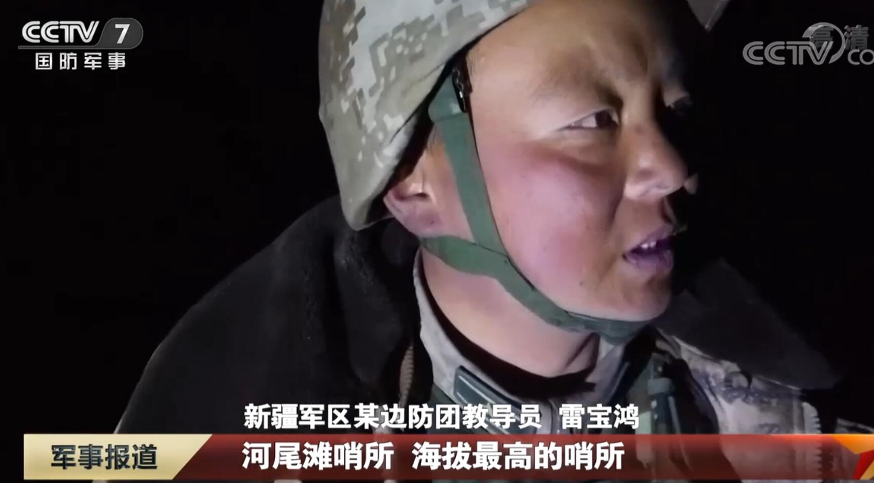新疆军区某边防团教导团雷宝鸿说道:河尾滩哨所,海拔最高的哨所,我们官兵在这里守防,不让一寸土地,一寸国土在我们手里丢失。